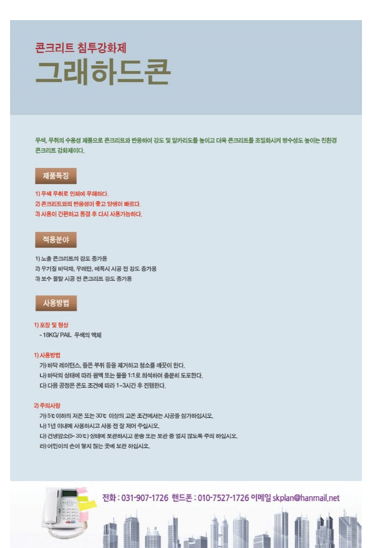 제품소개 > 콘크리트침투강화제 > 그래하드콘